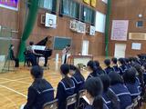 本日、出張音楽堂が行われました。お忙しい中、大宅さおり様、岩上杏子様、山崎智里様に来ていただき、演奏を披露してくださいました。生徒たちは、演奏を真剣に聞き、光陽中全体でリズムに乗りながら、演奏を楽しんでいました。
