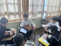 総合的な学習の時間で、クロスセッションを行いました。1年生は校外学習で学んだ「福井の魅力」について、2年生は職場体験で学んだことを、それぞれ11会場に分かれて発表し合いました。各会場の責任者や司会進行は2年生が中心となって行いました。普段、異学年と交流する機会はあまりないので、最初は緊張した面持ちで発表したり、聴いたりしていましたが、慣れてくるにつれ、積極的に質問する生徒が見られるようになりました。最後は生徒同士の助言を参考に、自分の発表を捉え直し、自身の学びを深めていました。これからも、生徒主体の他者との交流活動を積極的に取り入れる授業をデザインしていきます。