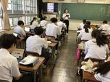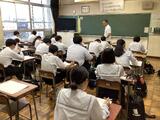 1学期に保健体育の授業で学んだ薬物乱用について振り返りながら、さらに専門的な視点でお話をしてくださいました。違法薬物は分からないように隠語で呼ばれたり、おしゃれなパッケージのお菓子に入っていたりするなど、意外と自分の身近にあることもあるため、正しい知識と「絶対に薬物を使用・保持しない」という強い意志をもつことが大切です。また、薬物の使用を誘われた場合は、①「私は」「僕は」を主語としてきっぱり断る、②その場から逃げる、③警察に通報することが有効であることを学びました。1回の薬物乱用で思い描いた人生が台無しになります。自分自身の体や夢と希望溢れる今後の人生を自分自身で守っていってほしいと思います。