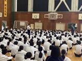 まず、「子どもロコモ」とは何かについて学び、「子どもロコモ」のチェック方法をみんなでやってみました。成長とともに未熟だったバランスは確立されますが、成長とともに柔軟性が低下することを知り、「子どもロコモ」やけがなどに繋がることを学びました。他にも「子どもロコモ」には、ゲームの普及による運動不足や食事面も関係していることを学びました。その後、「子どもロコモ」にならないためや「子どもロコモ」チェックでチェックがついた項目の改善方法について聞き、みんなでストレッチをやってみました。最後に、学校医の先生方からもけが予防についてのお話をしていただきました。楽しみながら体を動かすことができました。今後、部活動や体育などの運動前に取り入れてみるといいですね。