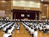 2学期始業式が行われました。校長先生のお話では、光陽中学校の校訓「自主 誠実 根性」に込められた思いを、全校生徒で考えました。生徒は、校訓の中で特に大切にしたい言葉を決めて、2学期にむけて「頑張ろう!」という思いを高められたと思います。