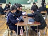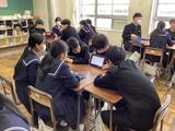 2年生は職業・キャリア教育の一環として、「Edu Town あしたね」を活用し、自分の適性や興味のある仕事について調べました。適性診断を行い、自分がどのような仕事に向いているのかを確認しました。結果を見ながら、「意外と当たっている」「こんな仕事も向いているんだ」といった声も聞かれ、生徒たちは自分の新しい一面に気付く様子も見られました。