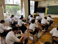 先日お伝えした校外学習のCMづくりは各クラスで進め、文化祭で全校生徒に披露する予定です。さて、本日夏休みの職場訪問に向けて、キャリア学習が本格的に始まりました。生徒は1年での出前講座などの学習を踏まえ、自分の適性や特性を見つめ、将来どんな仕事に就きたいか考え、職場訪問を行います。事前に職種や分野を決定し、エントリーシートに自己PRや訪問先でどんなことを学びたいかを記入し、それを元に実際に面接を体験します。将来の夢に向かってふぁいっ!